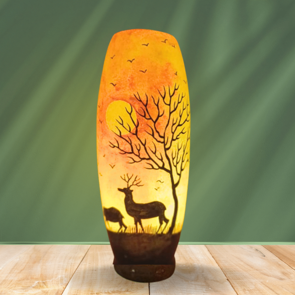 A Camel Lamp is a handcrafted artisan lamp, often made from camel skin or inspired camel-shape designs. It provides warm, artistic lighting perfect for home décor, gifts, or interior decoration.